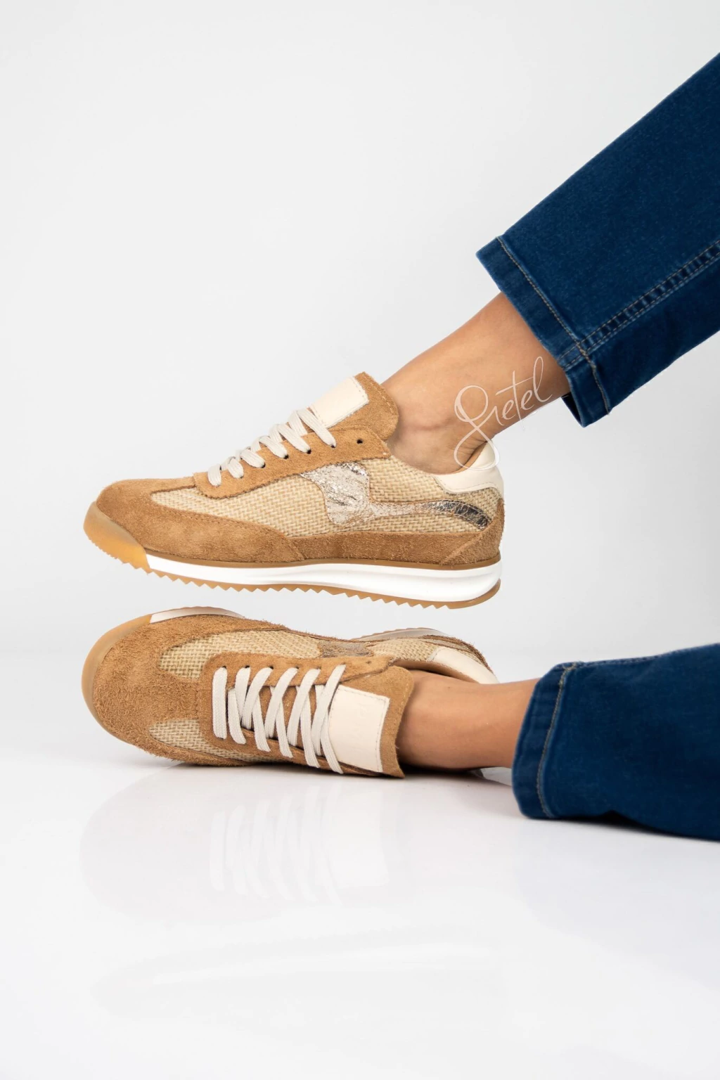Materiales de Calidad Superior: Estas zapatillas están confeccionadas con cuero genuino y detalles en rafia, ofreciendo un equilibrio único entre resistencia y frescura. El cuero aporta durabilidad y un acabado sofisticado, mientras que la rafia brinda un toque artesanal y ligero, ideal para el estilo de vida urbano y veraniego.